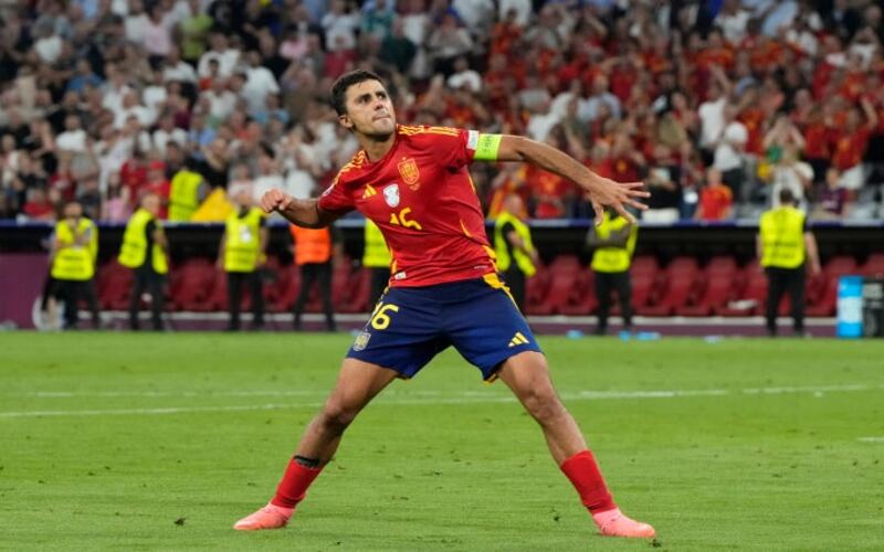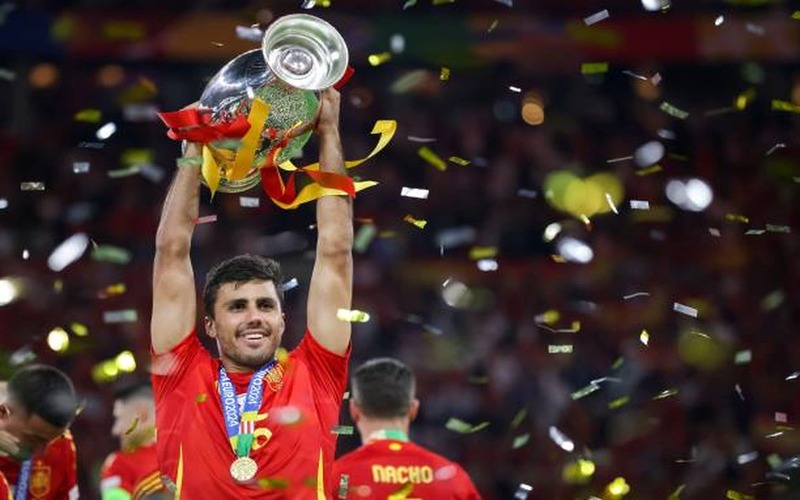 Nếu chức vô địch Ngoại hạng Anh là bệ phóng, thì ngôi vương EURO 2024 cùng đội tuyển Tây Ban Nha chính là cú hích quyết định đưa Rodri đến danh hiệu Quả bóng Vàng. Tại giải đấu này, anh thể hiện phong độ ổn định, khả năng kiểm soát khu trung tuyến và được vinh danh là Cầu thủ xuất sắc nhất EURO 2024.